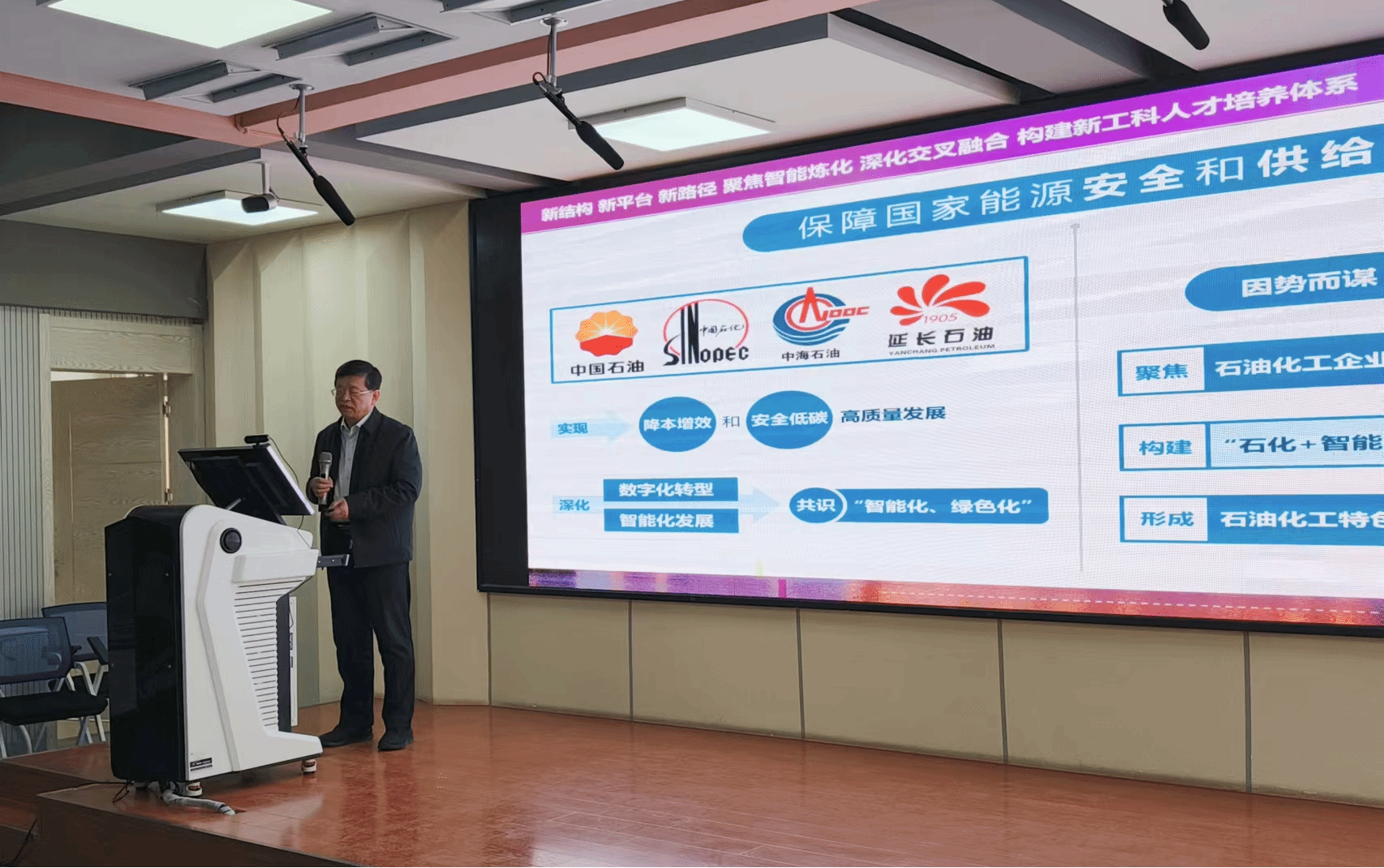 钱建华围绕构建新工科人才培养体系作了《新结构 新平台 新路径 聚焦智能炼化 深化交叉融合 构建新工科人才培养体系》的精彩报告,重点阐述了新工科内涵、新工科建设目标、新工科建设途径以及我校经验,并在教学改革、队伍建设和新工科人才培养等方面为陇东学院提供有建设性的意见和建议。我校研究生院常务副院长马贵阳介绍了我校研究生院建设情况与展望。