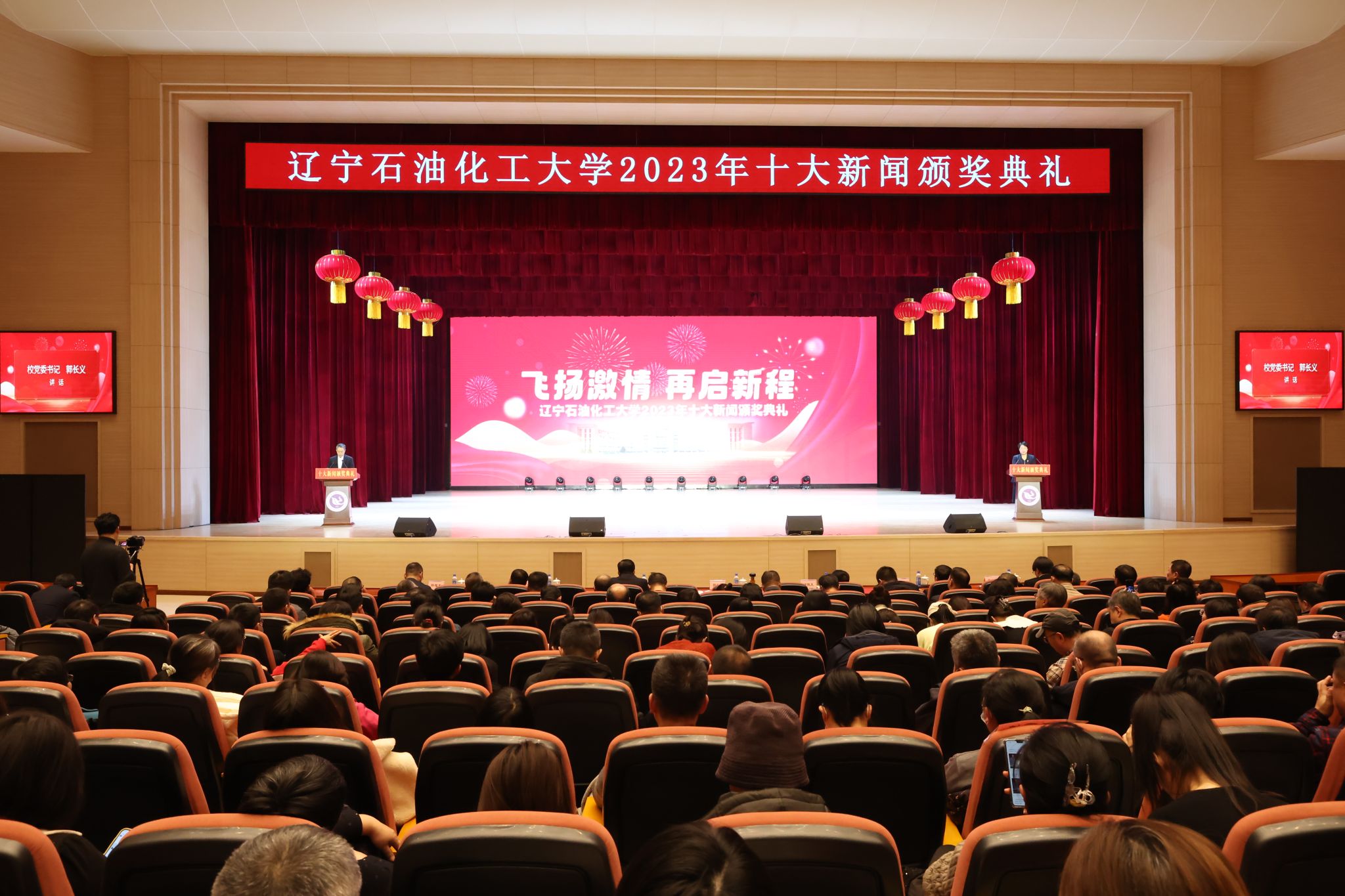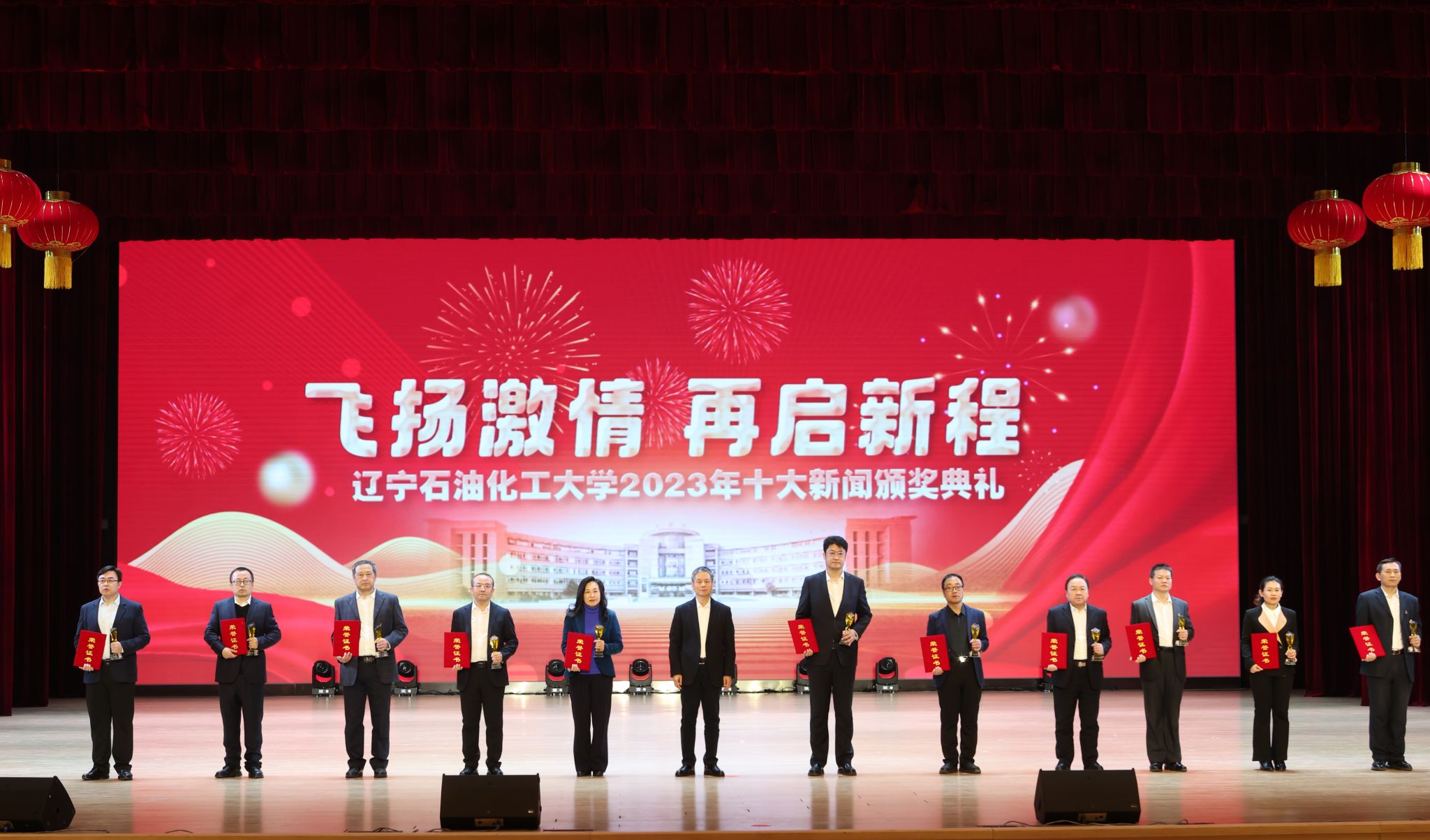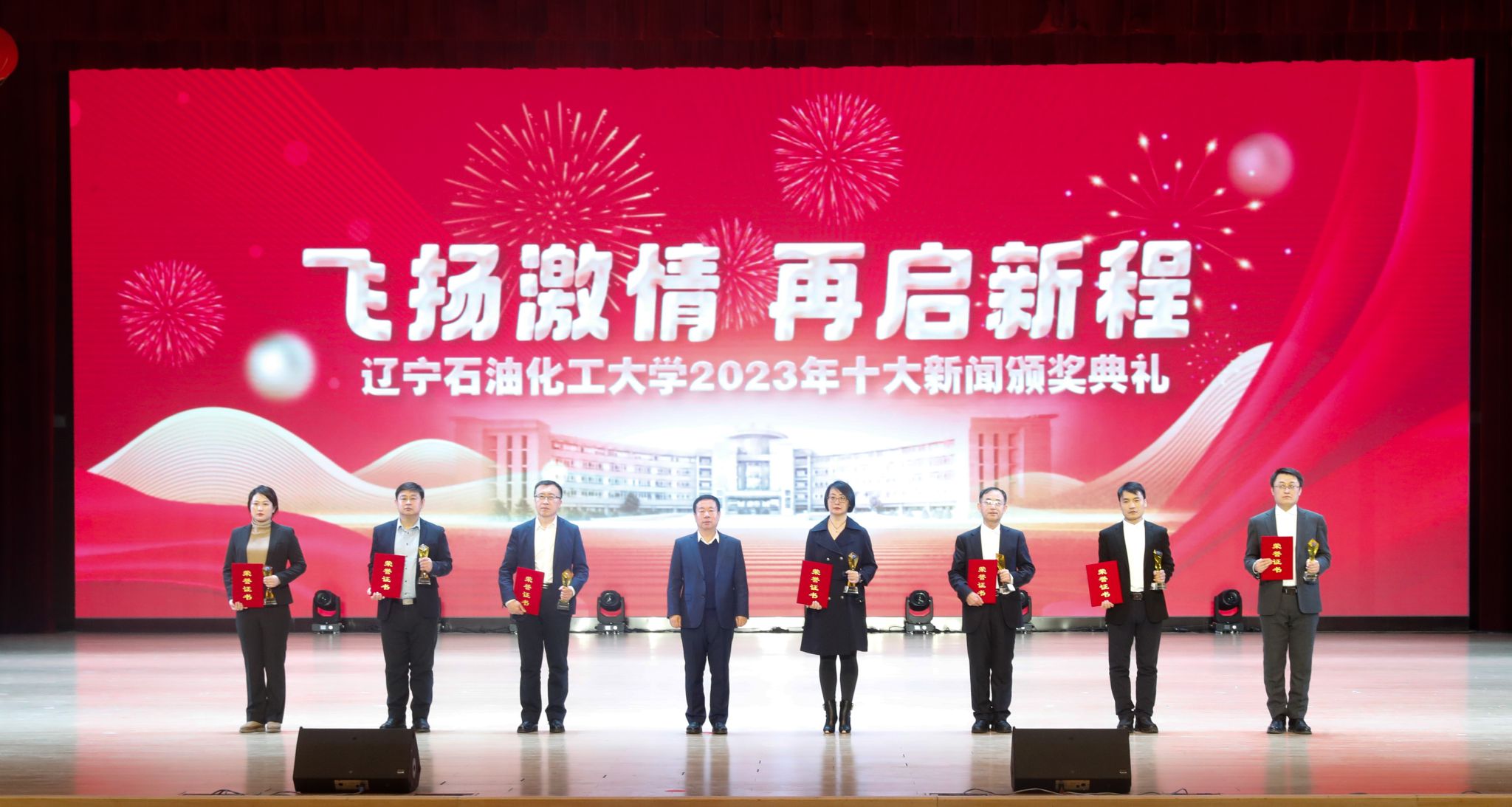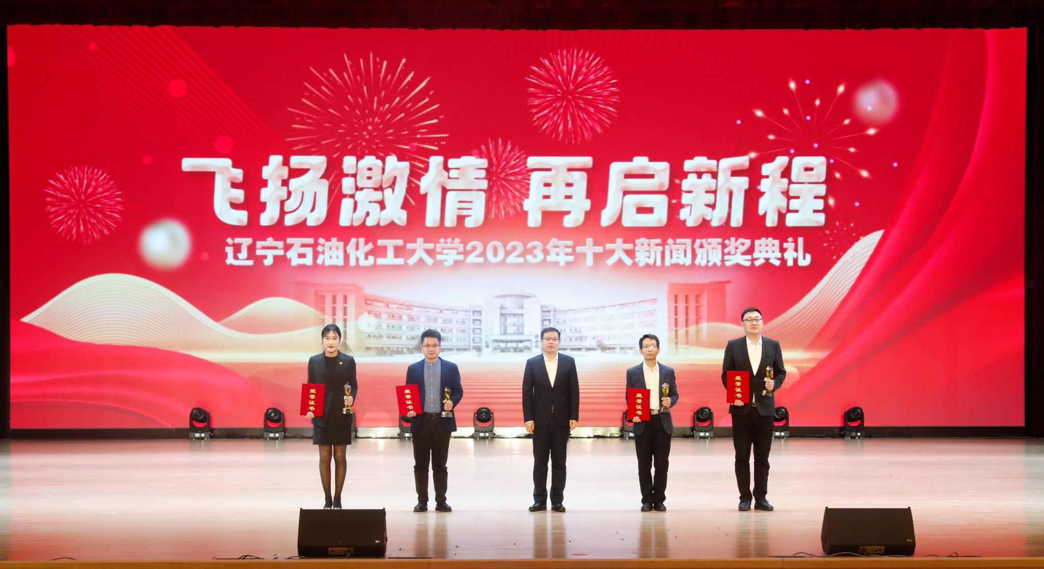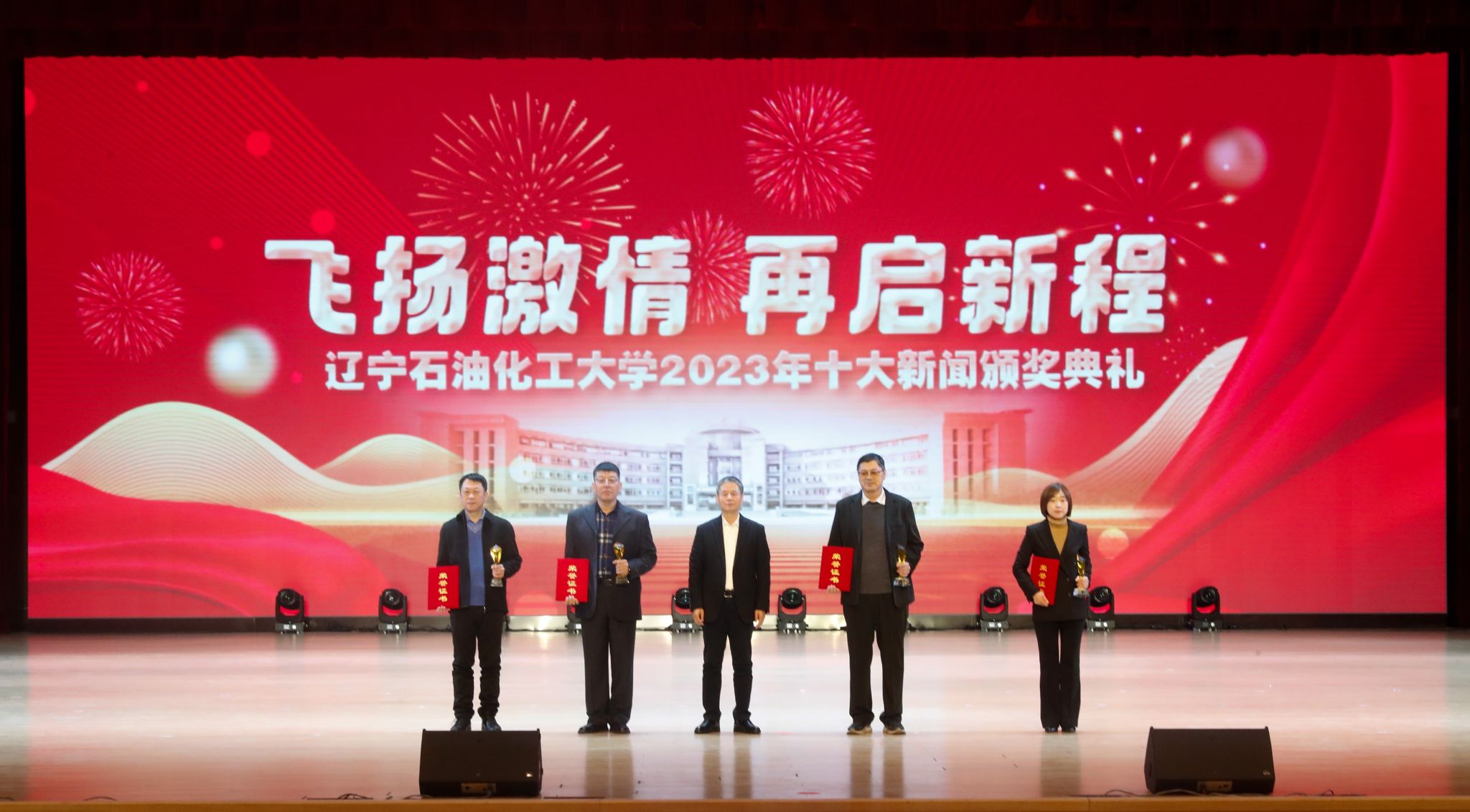 岁序常易,华章日新,学校十大新闻颁奖典礼至今已经成功举办了五届。带着2023年的辛勤耕耘与满满收获再启新征程,全体辽石化大人将继续稳中求进促提升,以进促稳谋突破,争分夺秒抓紧干,在加快推进特色鲜明的一流高水平应用型大学建设道路上赓续前行,奋力书写2024年辽石化大踔厉奋发、飞扬激情、团结筑梦、接续奋斗的崭新篇章!(撰稿人:娄永利 刘桓璐 校对人:陈雪峰 审稿人:雷冬海/张永利 摄)